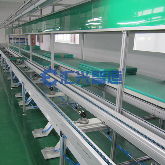 運用倍速鏈條的增速功能,使其上承托貨物的工裝板快速運行,通過阻擋器停止于相應的操作位置;或通過相應指令來完成積放動作及移行、轉(zhuǎn)位、專線等功能。由于該機運送貨物的臺板需反復使用,所以很少單臺使用,而是與各種專機如頂升平移機,頂升轉(zhuǎn)位機等配套構(gòu)成水平或垂直循環(huán)系統(tǒng)。它采用特制的,經(jīng)表面處理的擠壓鋁合金型材作為導軌,使自流式輸送系統(tǒng)在輸送過程中具有非常好的穩(wěn)定性和持久性,適合產(chǎn)品大批量連續(xù)生產(chǎn)。同時自流式輸送系統(tǒng)靈活、多樣化的設計使它具備多功能的特性。