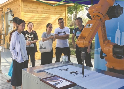 嘉賓觀看機(jī)器人書(shū)法表演
