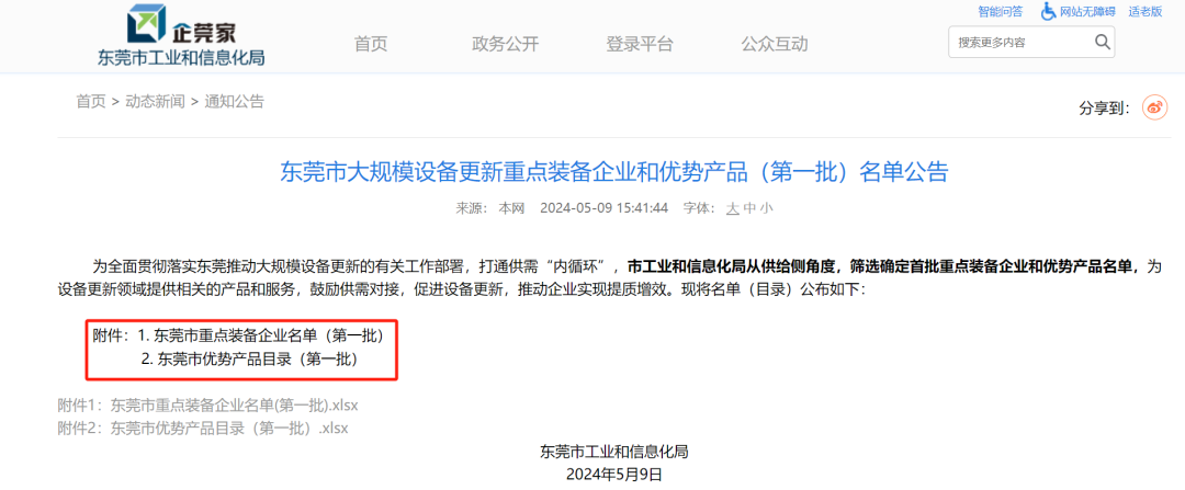 在這種政策要求下,為全面貫徹落實東莞推動大規模設備更新的有關工作部署,打通供需“內循環”,市工業和信息化局從供給側角度,篩選確定首批重點裝備企業和優勢產品名單,為設備更新領域提供相關的產品和服務,鼓勵供需對接,促進設備更新,推動企業實現提質增效。